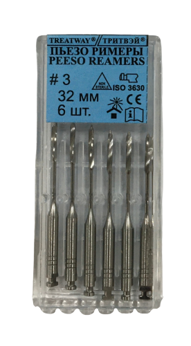 Пьезо римеры № 3 ТРИТВЭЙ длиной 32 мм применяется для обработки устьев зубных каналов при лечении сложных случаев кариеса. С его помощью производится очистка, расширение и формовка перед пломбированием.